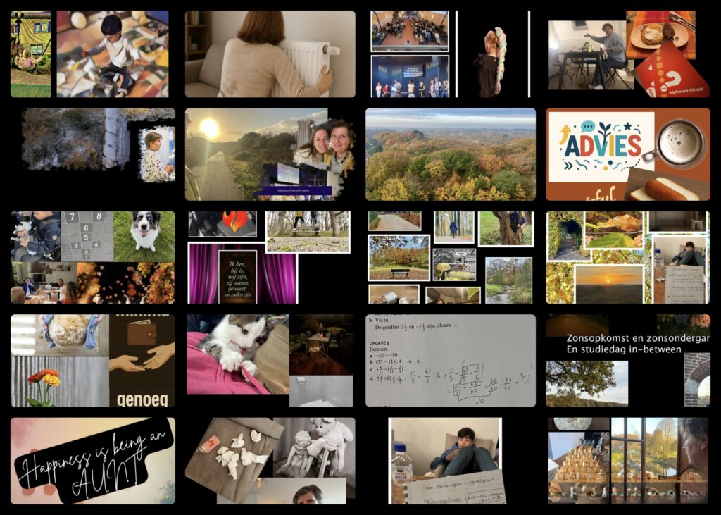 Dat is woorden geven aan liefde, aan zegeningen, aan relaties, aan een zonnestraal tussen de bomen door, aan een roodborstje voor het raam, aan een mooi stuk muziek op Spotify, of buiten de wind door je haren voelen en weten dat je leeft. Dat is genieten van de schaterlach van een kind, en zelfs het mogen troosten van een kleinicht als ze gevallen is, dat is een appje van een vriendin die vraagt hoe het met je is, of een nicht die bij voorbaat al soep aanbied als ik mij niet lekker voel.